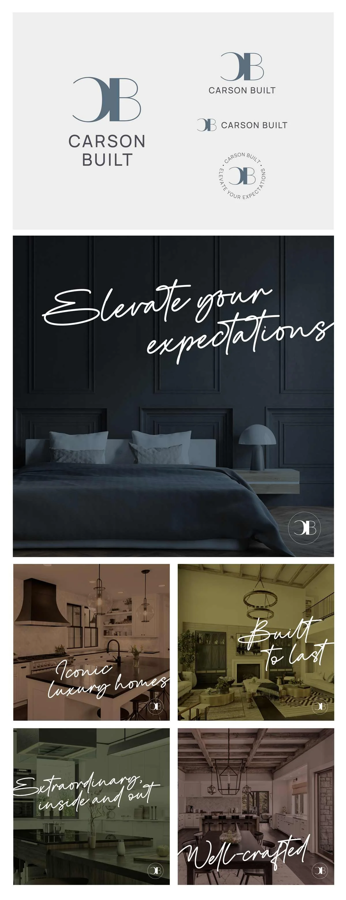 Carson Built is an award-winning luxury home builder that creates custom iconic houses, transforms and customizes existing residential and commercial spaces, and develops land investment opportunities. Their new identity needed to embody this and balance calculated precision with comfortable luxury. They needed a logo that could be used consistently for all of their touchpoints – one that was flexible enough to have variations that can be used in horizontal and vertical formats, without sacrificing readability.The typefaces used areTown 60 Contrast Bold and Manrope Medium.